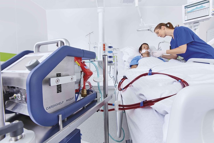 ECMO is not a cure. It supplies enough oxygen and rests the lungs until they can recover and take over again. Below is an ECMO device in action.